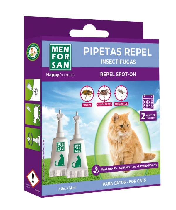 Njolla repelente antiparazitare për macet kundër infektimit të PLESHT, KËSHMAVE, MORRAVE, MIRAMAVE dhe kafshimeve të mushkonjave.
