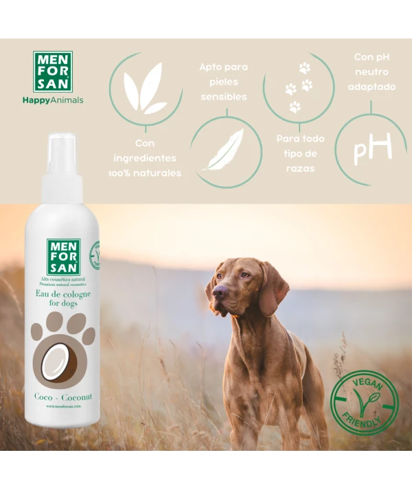 Deodorant për qentë me aromë KOKOSI i krijuar posaçërisht për të ofruar një erë të freskët pas larjes dhe një efekt deodorant intensiv që është shumë i këndshëm duke respektuar lëkurën dhe vetitë nuhatëse të kafshës.