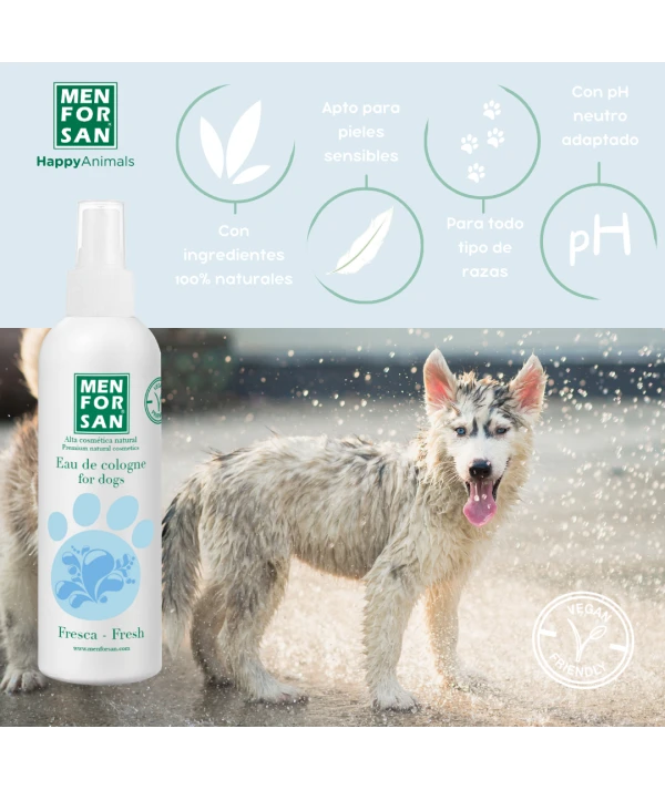 Eau deodorant për qen me aromë FRESH e krijuar posaçërisht për të ofruar një erë të freskët pas larjes dhe një efekt deodorant intensiv që është shumë i këndshëm duke respektuar lëkurën dhe vetitë nuhatëse të kafshës.