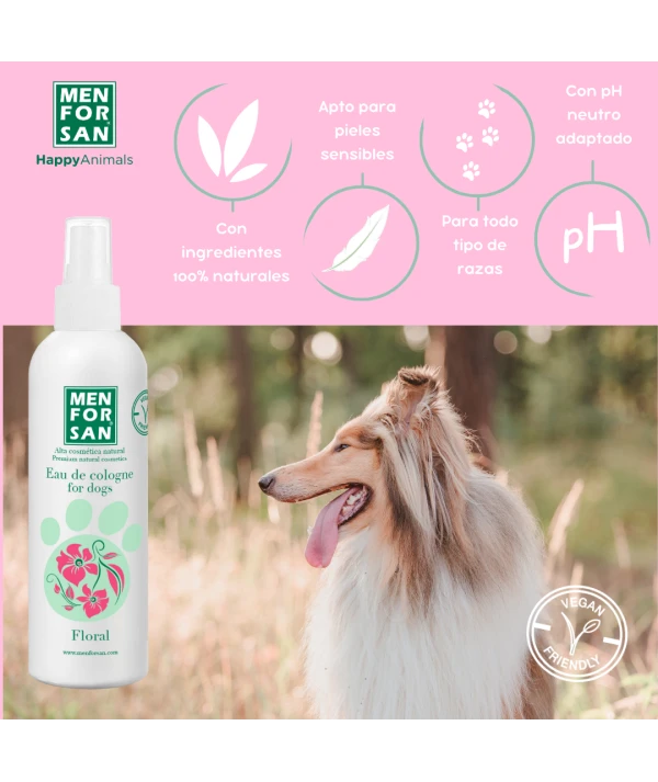 Eau de Cologne për qentë me aromë LULESH, krijuar posaçërisht për të ofruar një erë të freskët pas larjes dhe një efekt deodorant intensiv që është shumë i këndshëm duke respektuar lëkurën dhe vetitë nuhatëse të kafshës.
