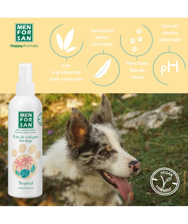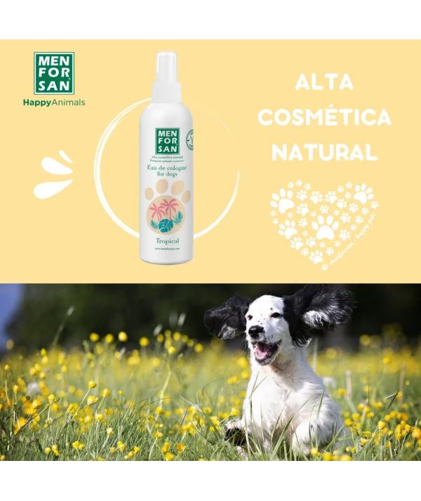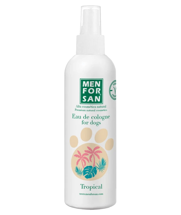 Eau deodorant për qentë me aromë TROPICAL i krijuar posaçërisht për të ofruar një erë të freskët pas larjes dhe një efekt deodorant intensiv që është shumë i këndshëm duke respektuar lëkurën dhe vetitë nuhatëse të kafshës.