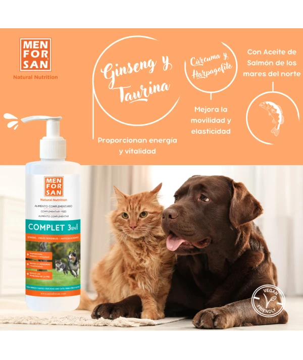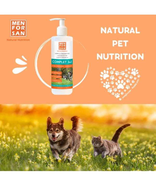 Komplet ushqimor i lëngshëm i shtuar në ushqimin e zakonshëm të qenve dhe maceve i bërë nga përbërës natyralë. Ky produkt përmirëson lëvizshmërinë dhe elasticitetin, redukton problemet e lëkurës dhe i jep energji dhe vitalitet kafshës suaj.