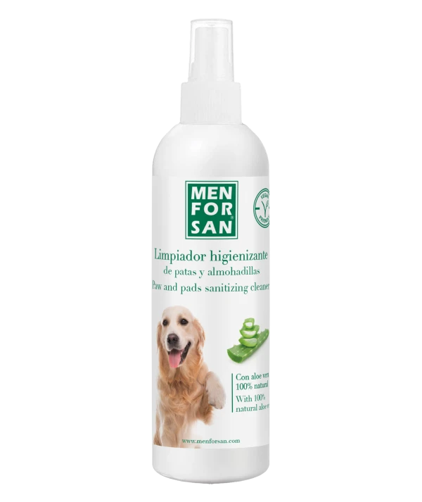 Spraj hidro-alkoolik me aloe vera 100% natyrale nga bujqësia organike dhe glicerinë që dezinfekton, dhe mban të pastra putrat dhe jastëkët e çdo race qeni pas shëtitjeve të përditshme. I lejon qentë të hipin në vende të ndryshme, si divan, shtrat ose makinë në mënyrë të sigurt dhe higjienike.