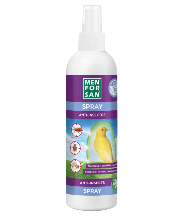 Spërkatje natyrale për shpendët me vaj Margose (Neem), Geraniol dhe Lavandin. Margose (Neem) është një insekticid natyral që eliminon të gjitha llojet e insekteve të pranishme në lëkurë ose pallto (morrat, afidet, marimangat, etj.).
